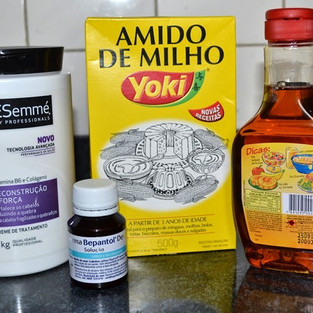 Para essa receita você vai precisar de 2 colheres de maisena, 1 xícara de água, 3 colheres (sopa) de creme de hidratação e 1 colher (sopa) de azeite de oliva.